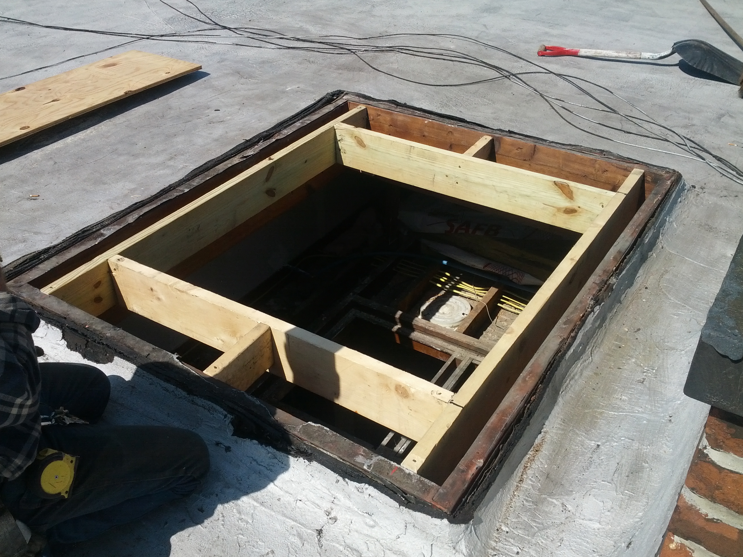 Commercial Skylight 2 28 May ← Previous Image Next Image → Then, frame it out to fit the new skylight’s dimensions.